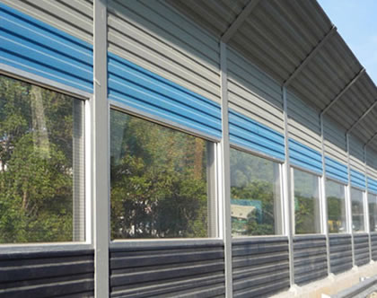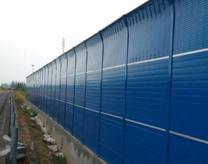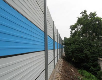 彩鋼板聲屏障是在高速上越來越多的*種聲屏障材料,彩鋼板聲屏障主要由鋼立柱和彩鋼屏體板組成,屏體板主要內(nèi)部有泡沫夾心作為吸音材料,外部是兩層彩鋼板,可以多種顏色,藍色、白色等;常常彩鋼板聲屏障與鍍鋅板聲屏障相互結(jié)合,吸音隔音結(jié)合,效果更佳!