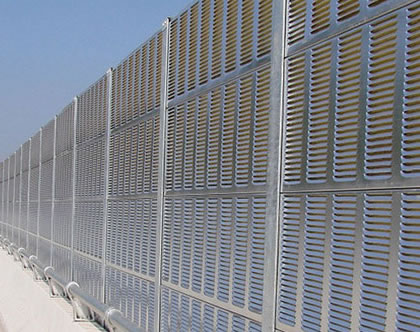開槽孔的吸聲復(fù)合板中、高頻隔聲功能較好,不開槽孔的復(fù)合板聲學(xué)構(gòu)件對中、低頻隔聲功能較好,因而可根據(jù)噪聲特色選用不*樣布局方式的聲屏障。