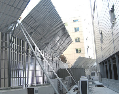廠區(qū)聲屏障特別是火力發(fā)電廠,機(jī)械設(shè)備很多,加之設(shè)備布置集中,各設(shè)備產(chǎn)生的噪聲重重疊加、相互干擾,因而形成多重噪聲污染源,而且噪聲種類多樣,既有沉悶的低頻噪聲,又有刺耳的高頻噪聲。發(fā)電廠的噪聲除來自主機(jī)及其輔助機(jī)械外,還有來自管道系統(tǒng)的主要閥件,這些噪聲頻率范圍為:低頻小于500HZ,中頻為500-800HZ,高頻大于800HZ。發(fā)電廠周圍的居住區(qū)受噪聲影響很大,造成居民的生活困擾,對發(fā)電廠的工人也會噪聲身體上的損害。因此,對其進(jìn)行治理是必要的,主要可以通過建立發(fā)電廠隔聲屏障對傳播途徑進(jìn)行控制。